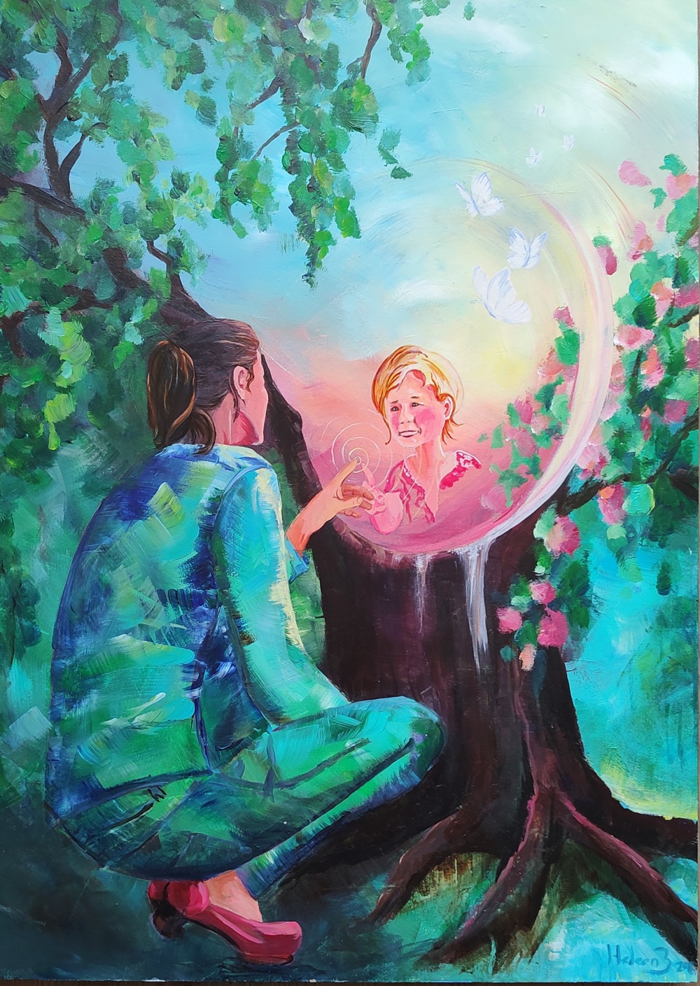 Soms maak ik kunst naar aanleiding van dromen, visioenen of levensprocessen, of wat iemand anders mij vertelt, wat een diepe persoonlijke of emotionele boodschap heeft.