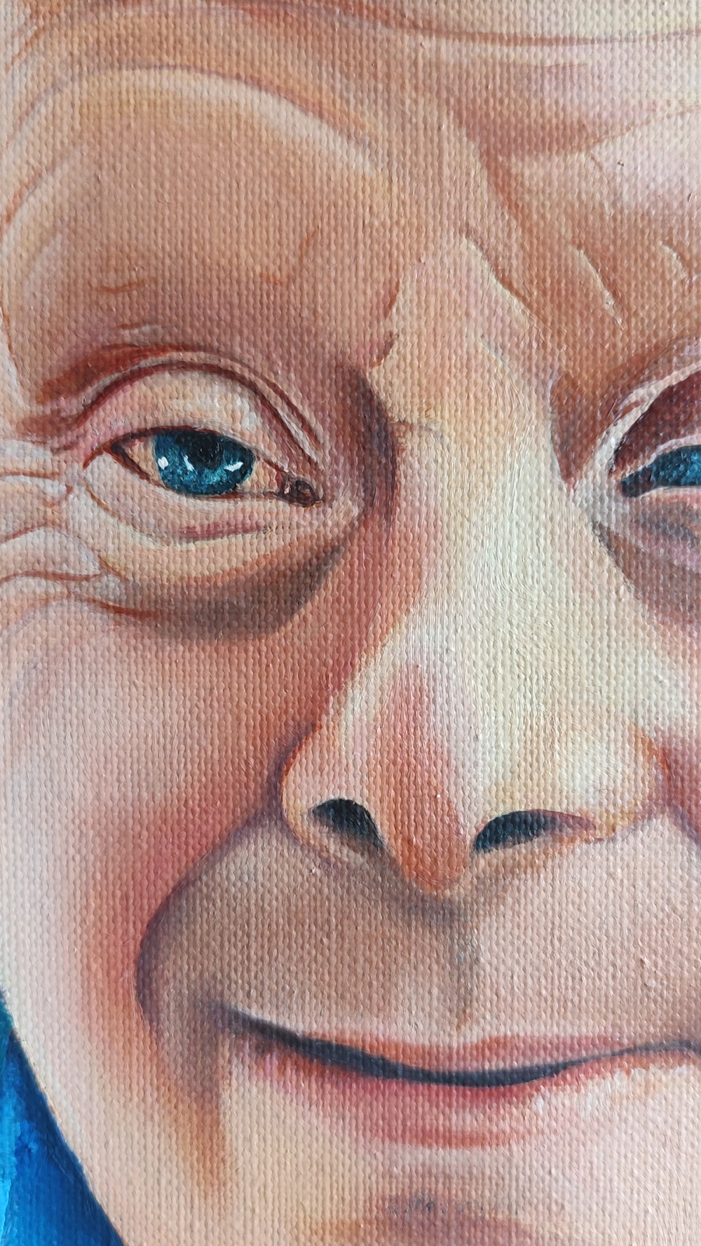Ook van deze bijzonder lieve man mocht ik een portret maken. Ik ben eerst op bezoek geweest, en heb zelf foto's gemaakt, die ik daarna verwerkt heb tot dit schilderij. Dit schilderij is gemaakt op hoogwaardig linnen doek van 40x50cm met olieverf.