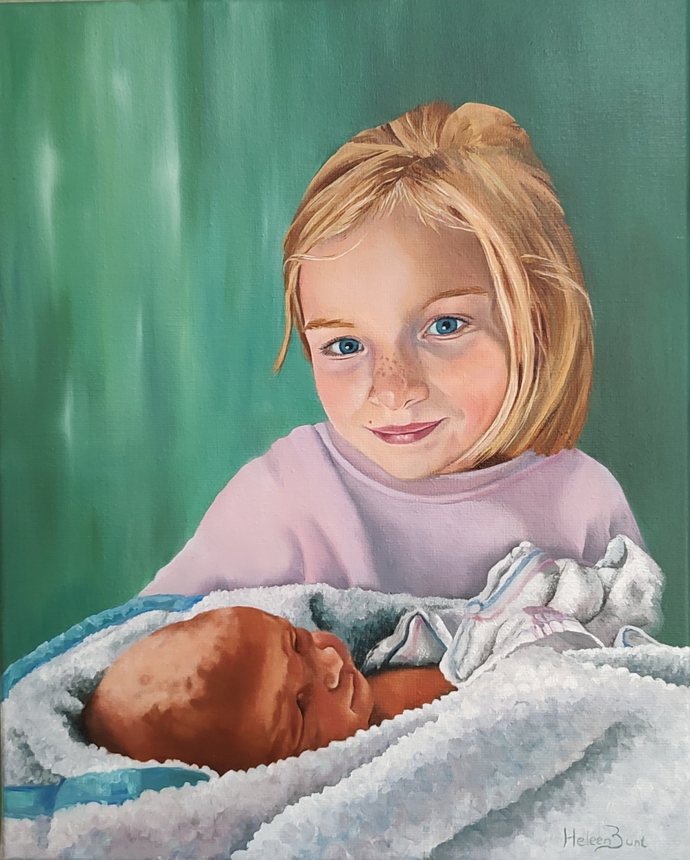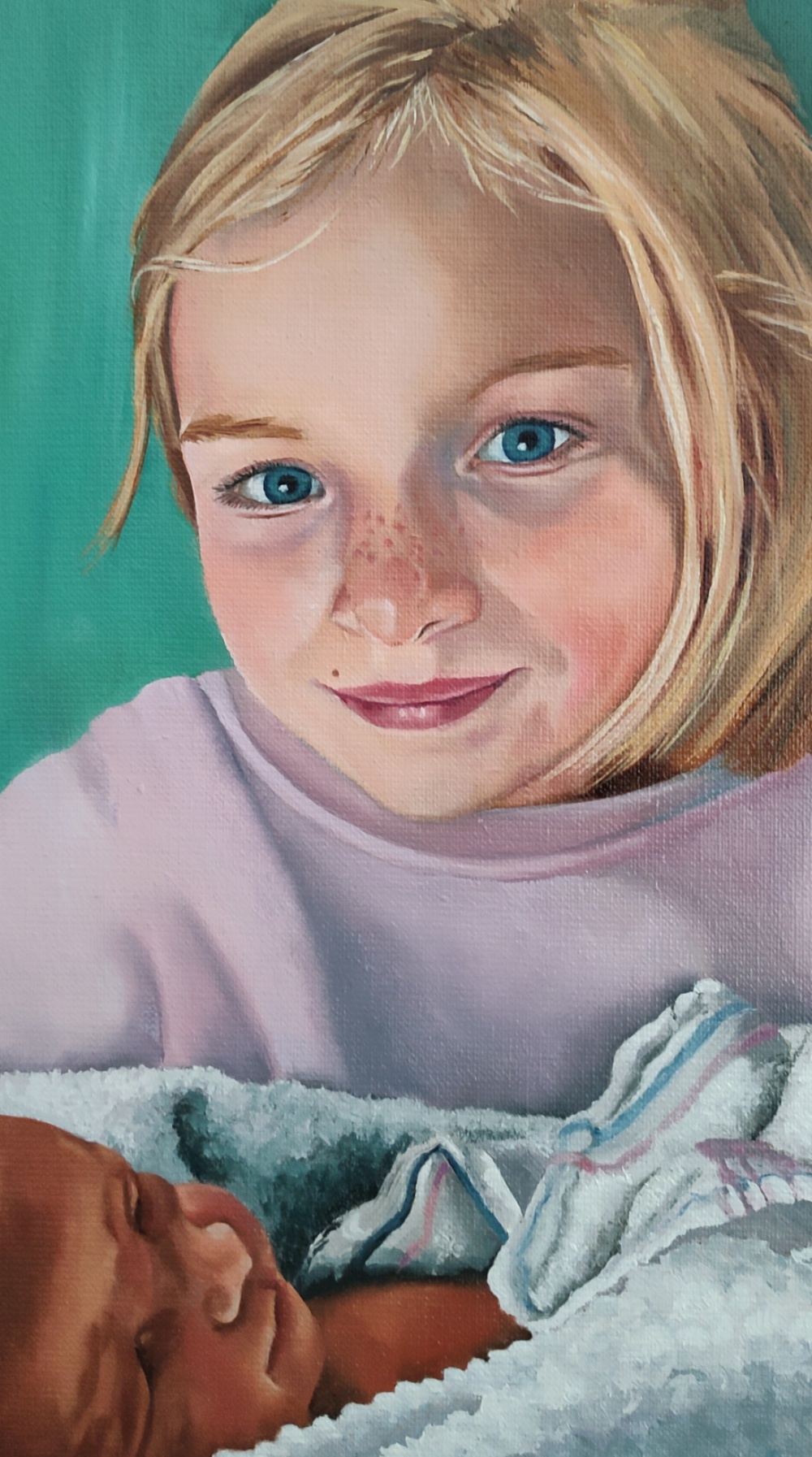 Voor een prachtig stel is mij gevraagd om hun lieve kinderen te schilderen als cadeau. Dit lieve portret heb ik geschilderd met olieverf op hoogwaardig linnen met een formaat van 40x50cm